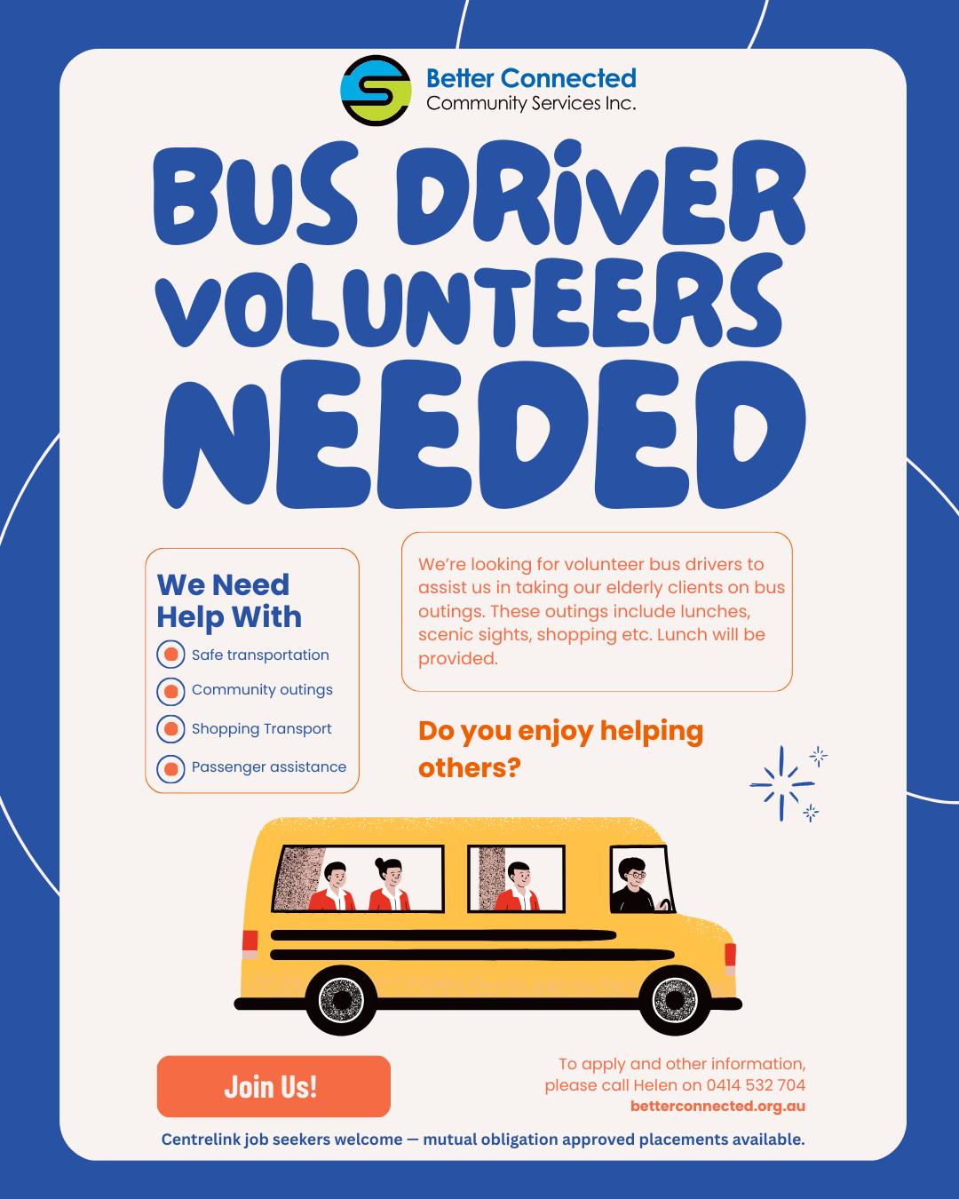 Better Connected Community Services Seeks Volunteer Bus Drivers